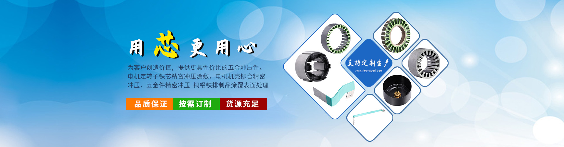 五金沖壓件、電機(jī)定轉(zhuǎn)子鐵芯精密沖壓涂敷、電機(jī)機(jī)殼鉚合精密沖壓、五金件精密沖壓